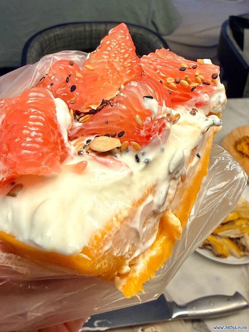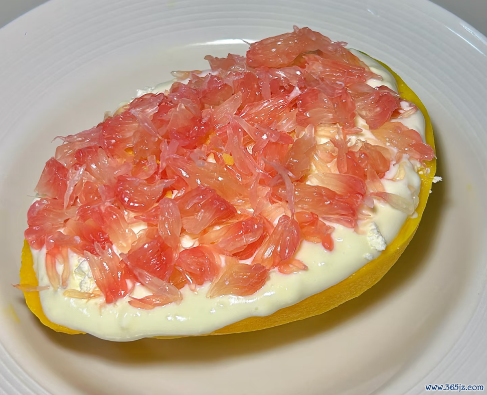 软糯浓郁的芒果果肉重逢脆嫩酸甜的柚粒,再覆上一层丝滑绵密的酸奶,这等于“固体杨枝甘霖”。